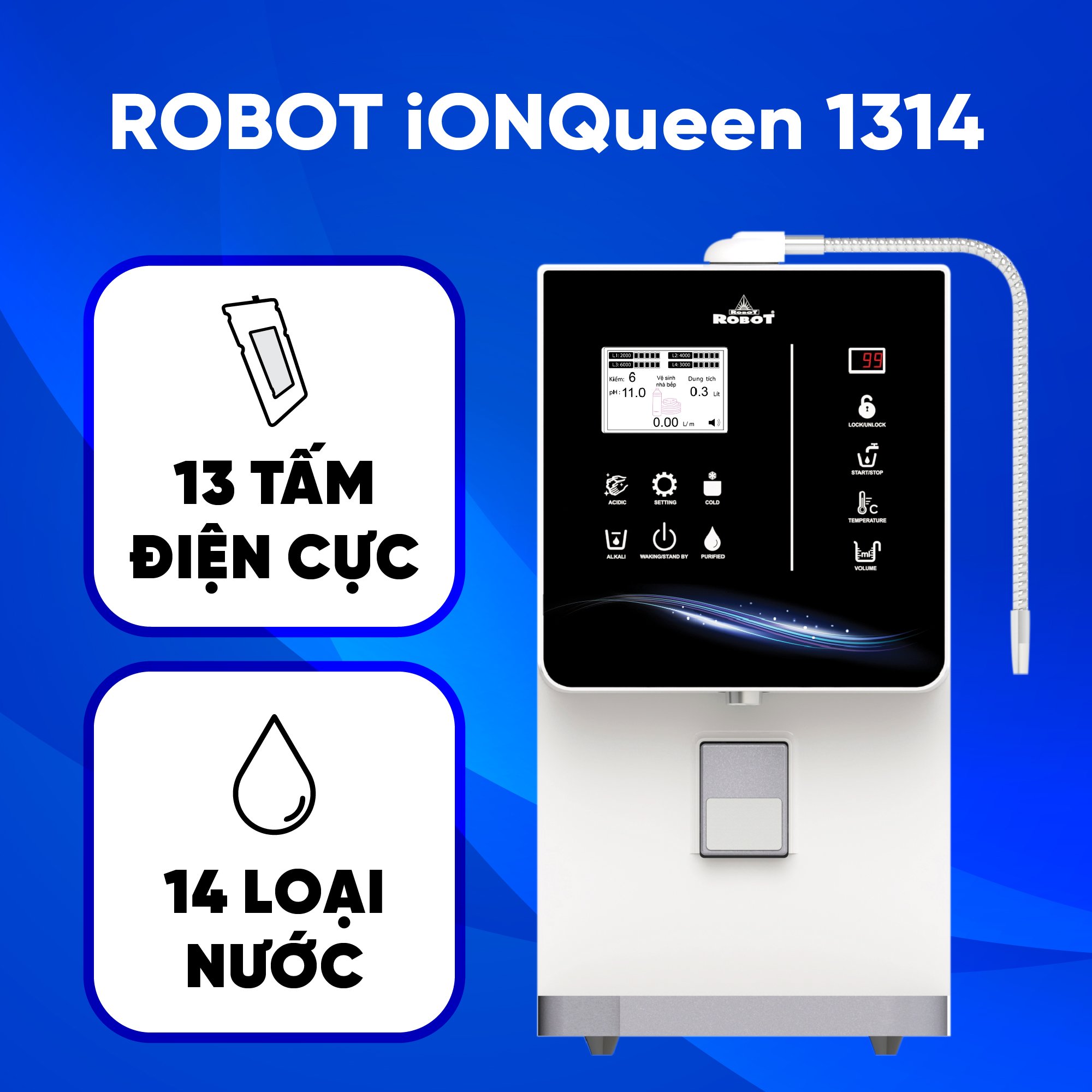Máy lọc nước điện giải iON kiềm ROBOT ionQueen 1314 là model đặc biệt sản xuất với công nghệ điện phân tiên tiến Korea, là model cao cấp nhất thế giới hiện nay, trang bị đến 13 tấm điện cực lớn nhất.