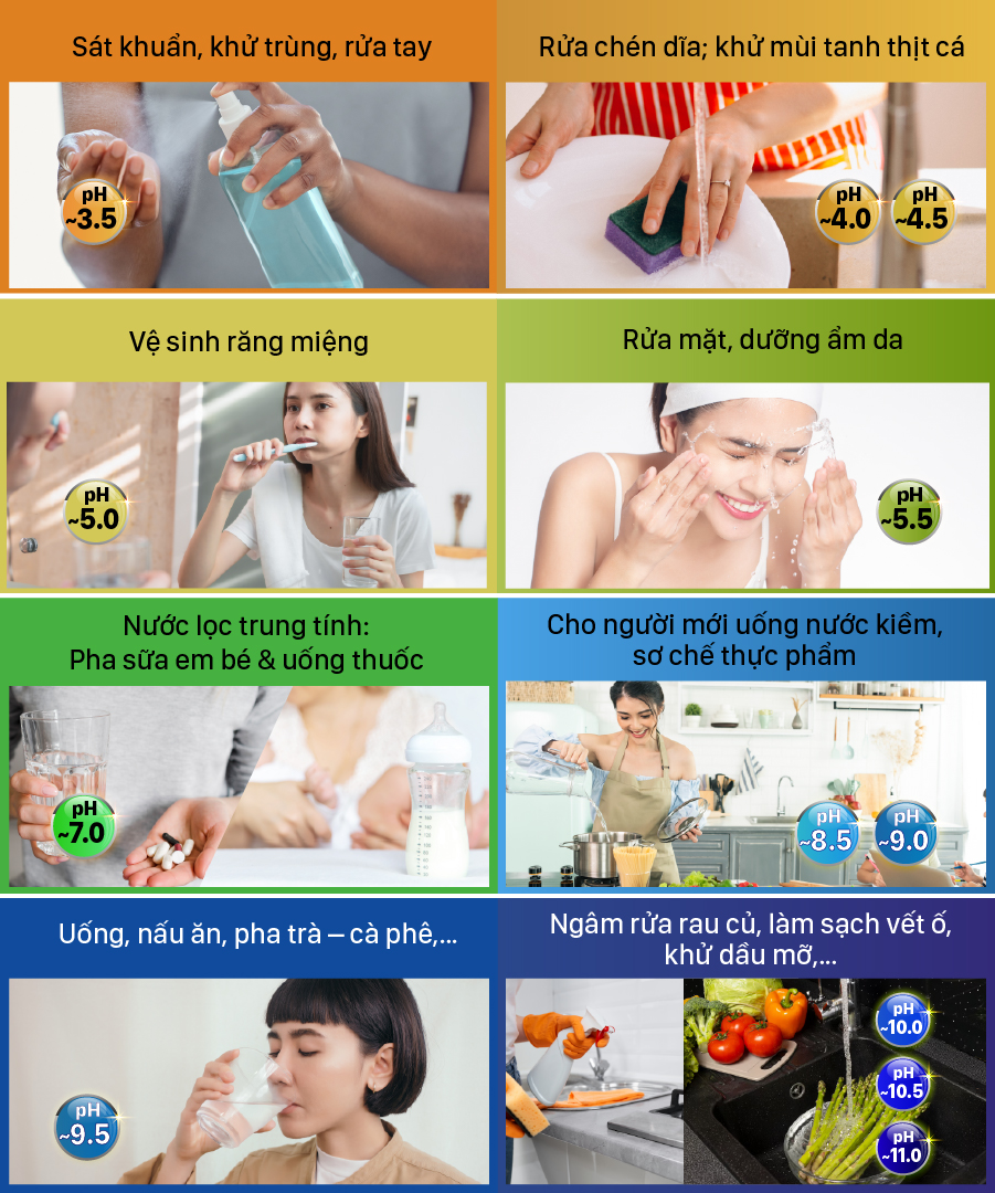 - Và 5 mức nước iON axit (pH 3.5/4.0/4.5/5.0/5.5).